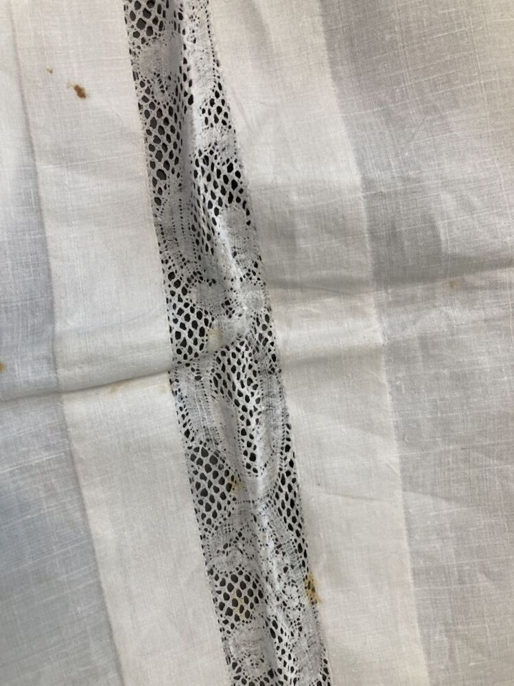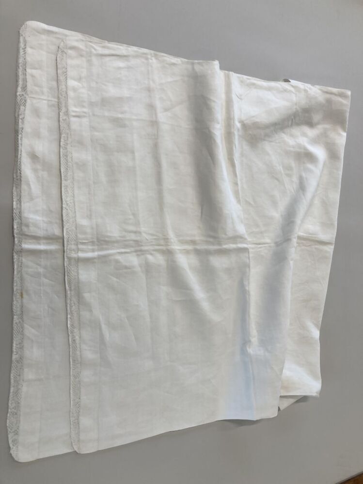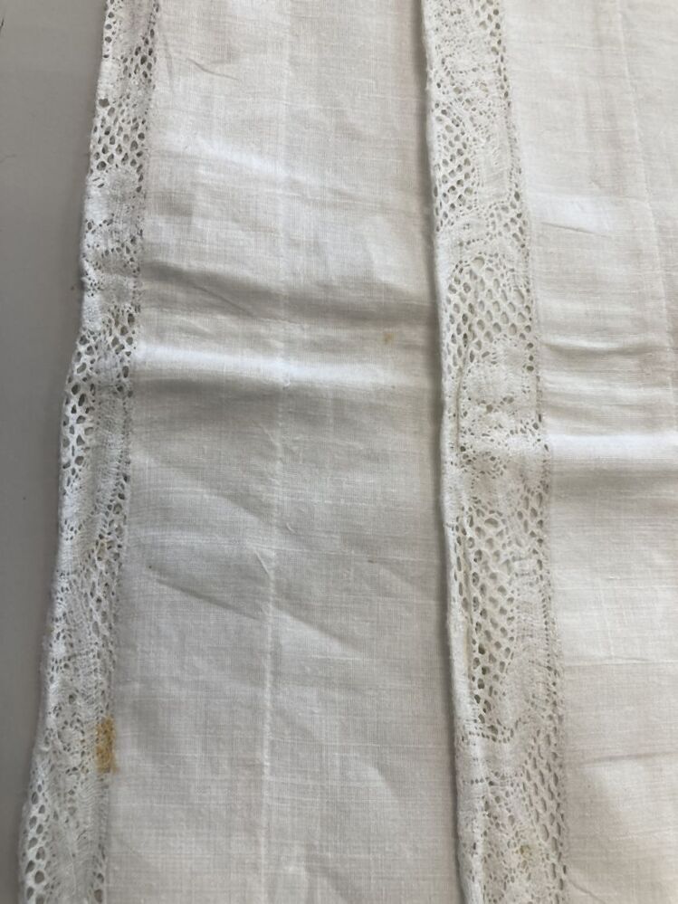 Linnen peluwsloop met kloskant tussenzetsel, trollegrond met linnenslagmotief zonder contourdraad