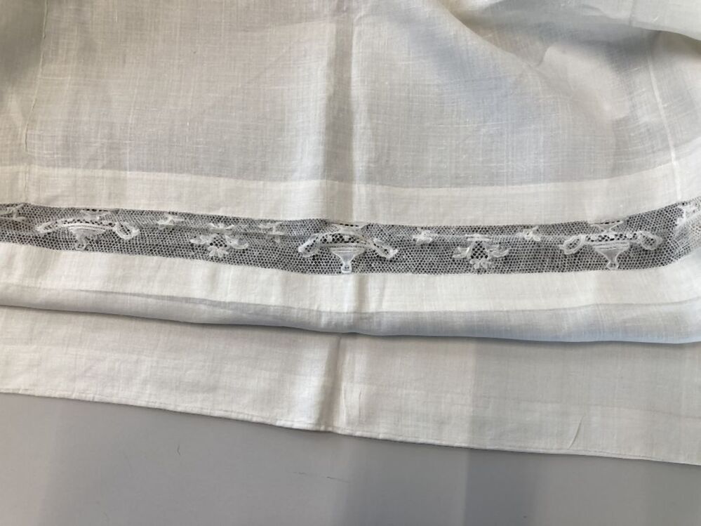 Peluwsloop met tussenzetsel van Point-de-Paris kloskant met losstaande vaas- en bloemmotieven, onderdeel van groep van twee