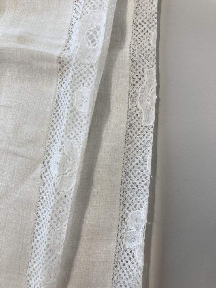 Peluwsloop met tussenzetsel van vlaams kloskant, trollegrond met stijf floraal motief en stippen