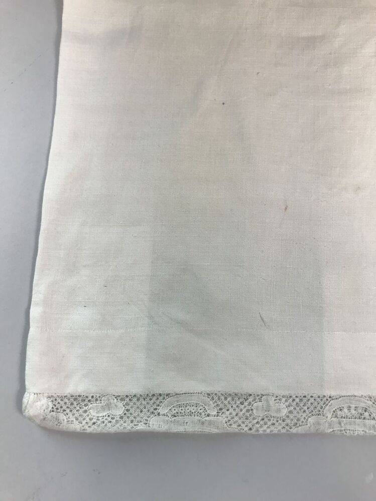 Kussensloop met kloskant tussenzetsel met trollegrond en stijve guirlande, samen met nog drie andere slopen