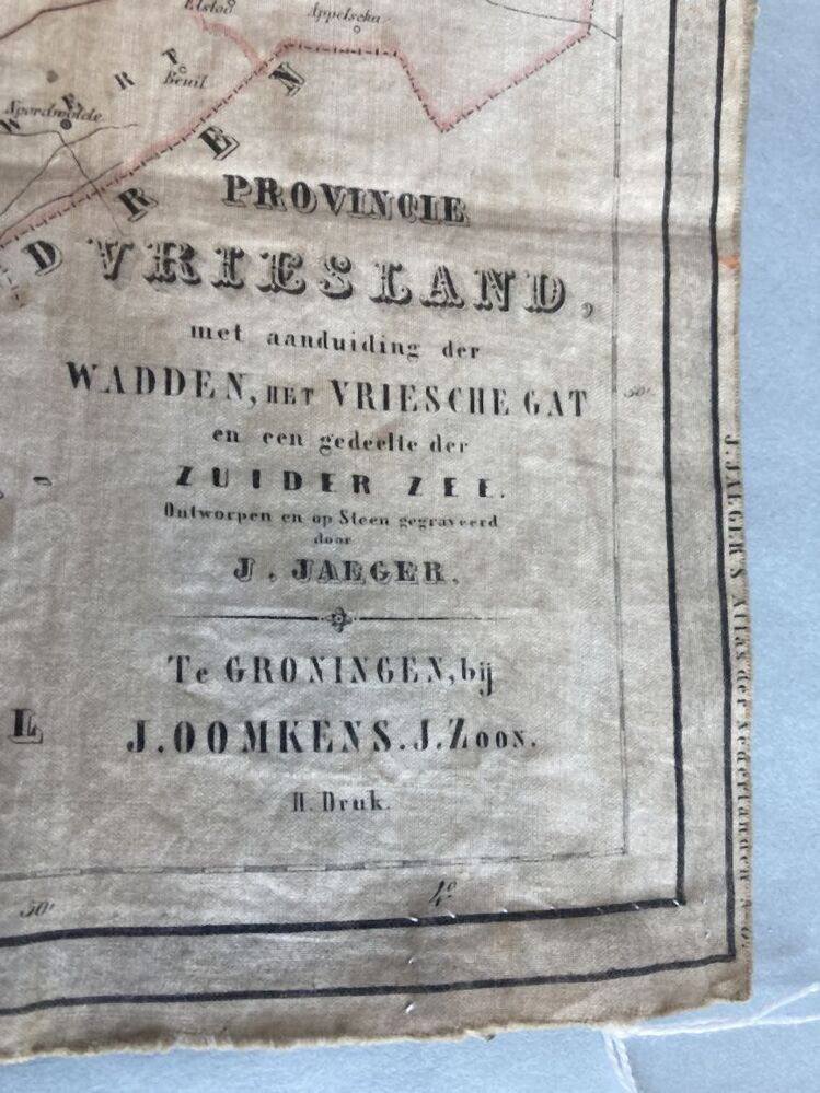 Kaart van Friesland, gedrukt op katoen
