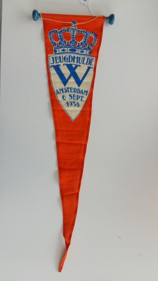 Vaantje of wimpel met tekst: Jeugdhulde W, Amsterdam 6 sept. 1938