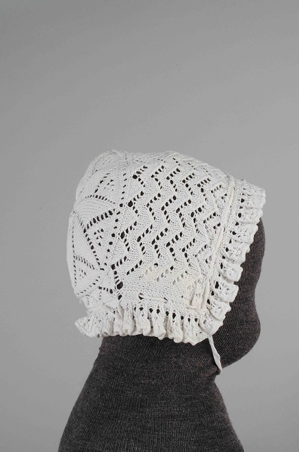 Mutsje van ajourbreiwerk van wit katoen,
