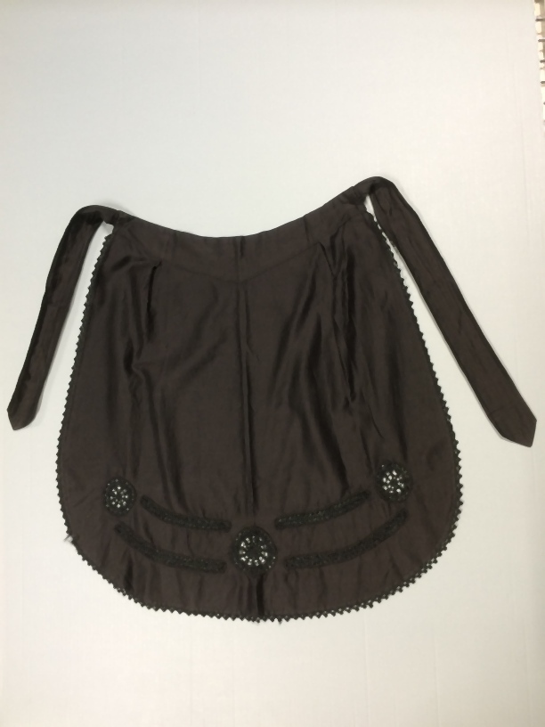 Zwart schortje met ingezette stroken van geborduurde tule
