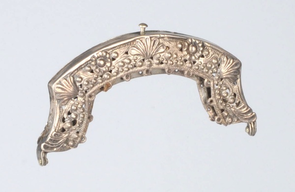 Zilveren beursbeugel, accoladevormig, met gedreven en gezaagd motief van palmetten en bloemen, met binnenbeugel