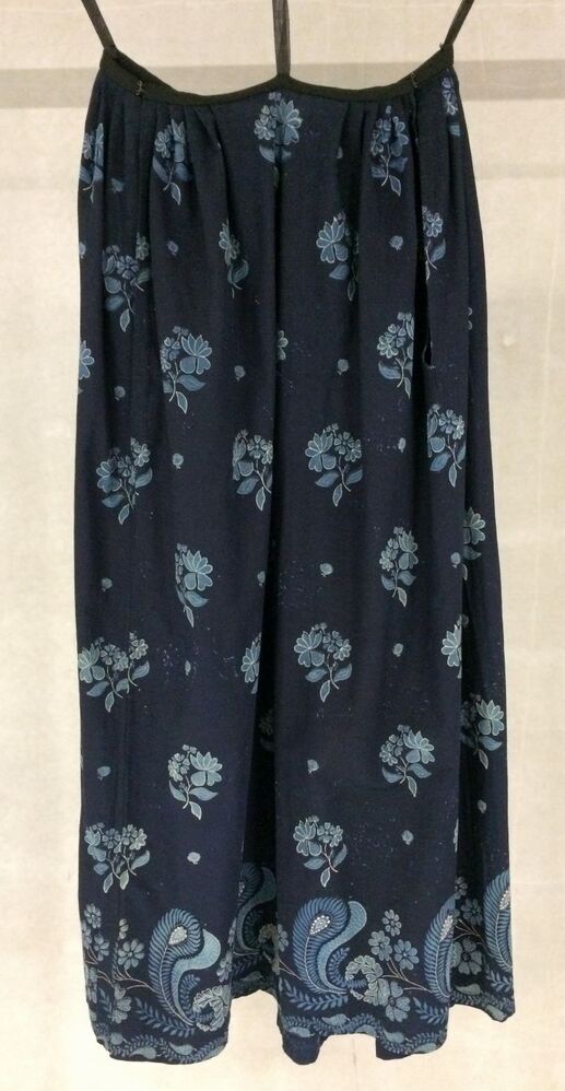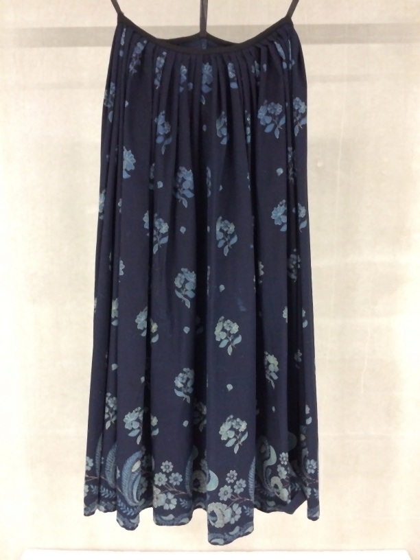 Rok van indigoblauw katoen met bloemmotieven en rand in reservedruk