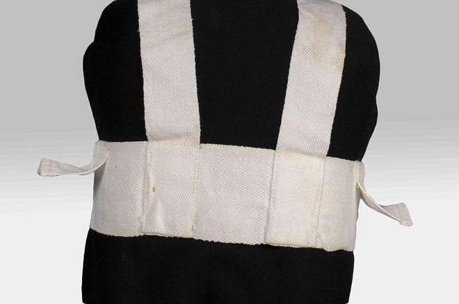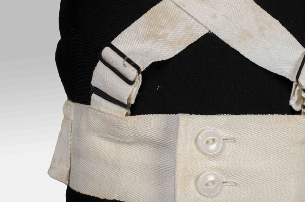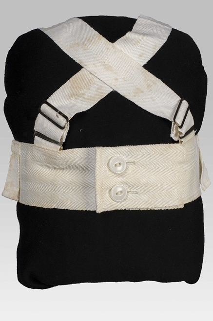 Wit tuigje voor kind, tailleband met schouderbanden van keperkatoen