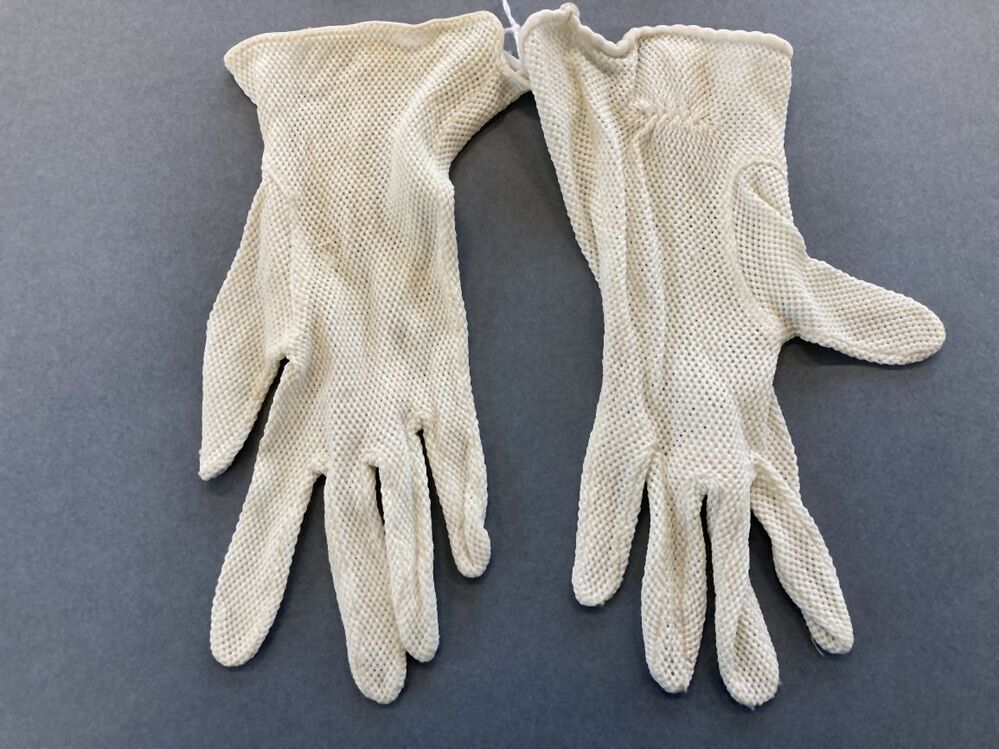 Paar kleine witte dameshandschoentjes van ajourbreisel