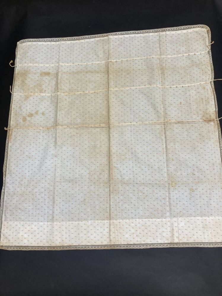 Pakdoek van bedrukt katoen afgezet met machinaal kloskant,