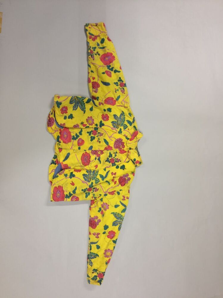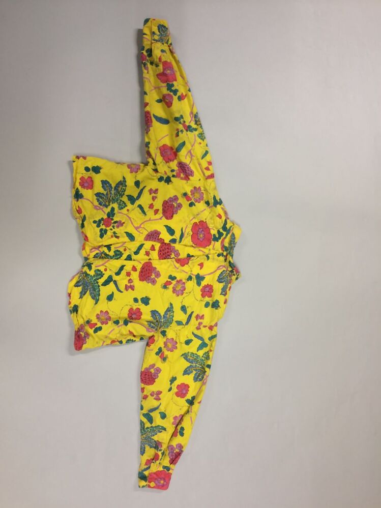 Meisjesblouse of jakje, van geel katoen bedrukt met sitspatroon