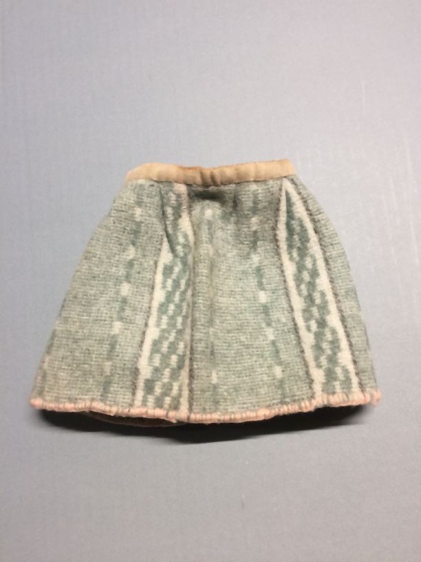 Grijsgroen flanellen poppenrokje, onderdeel van groep van twee