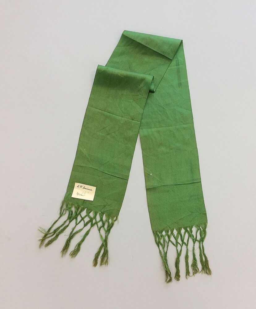 Smal heldergoen zijden siersjaaltje met franje