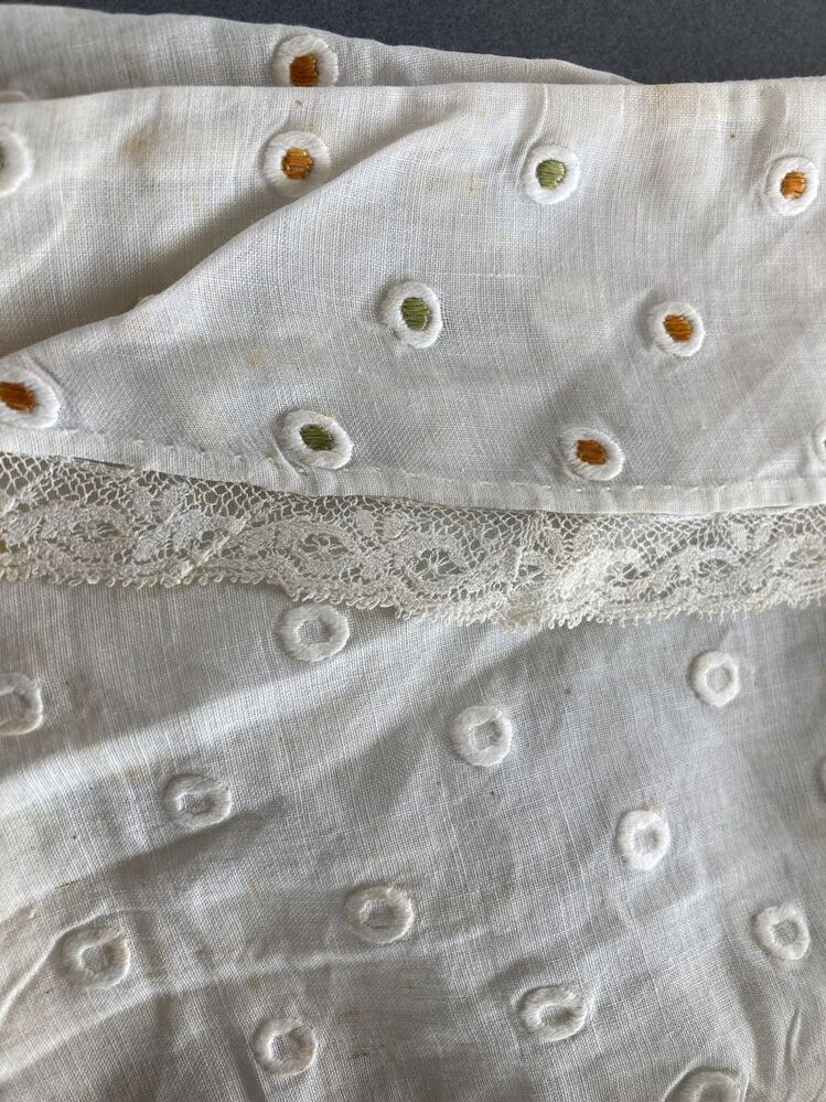 Verwijst naar werken die zich kenmerken door een patroon of ontwerp dat is uitgevoerd in met draad of fijn metaaldraad gemaakte steken. De patronen worden gewoonlijk uitgevoerd op stof, maar ook leer, papier of andere media kunnen worden gebruikt; de werken kunnen bedoeld zijn om ingelijst te worden of om kleding, bedtextiel, meubelbekleding, kussens, altaarkleden, ceremoniële voorhangen of andere zaken te versieren. (AAT)