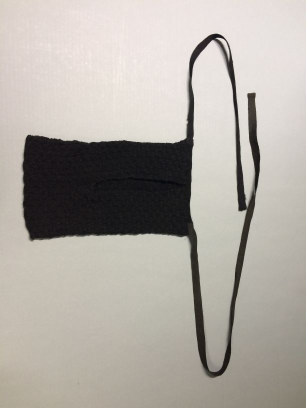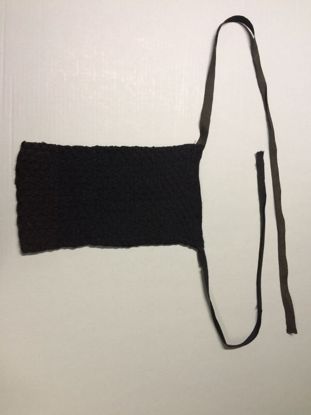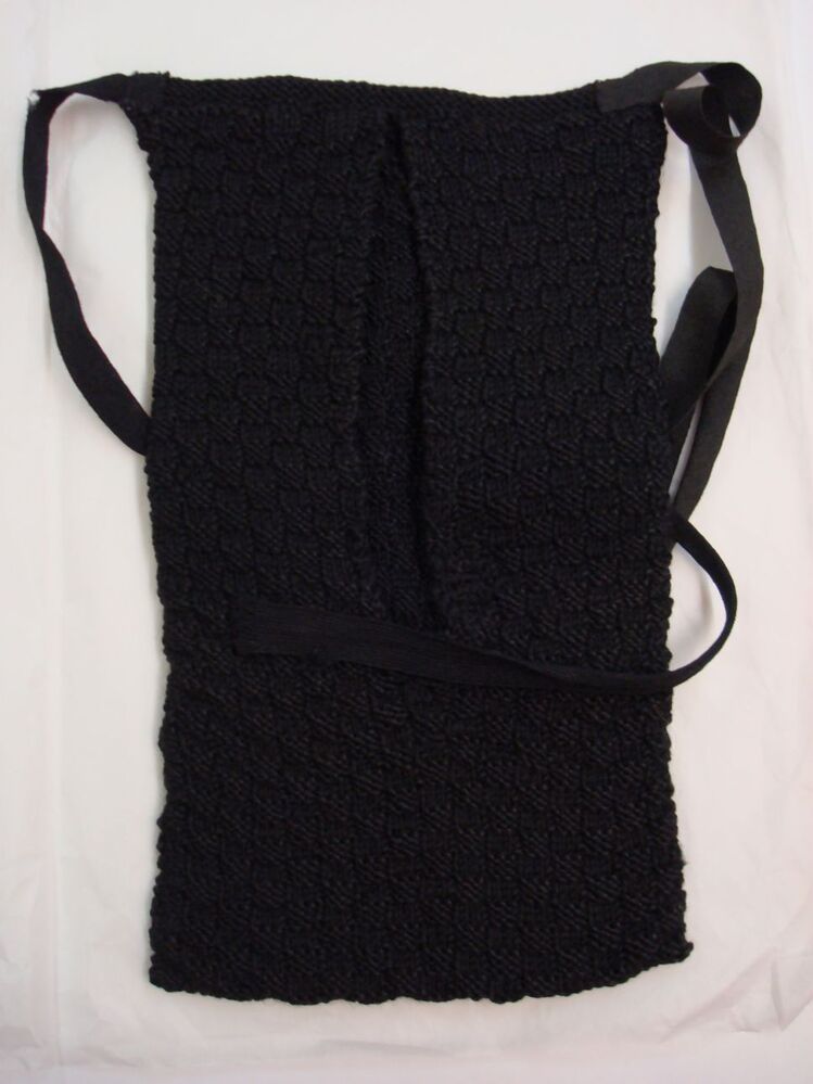 Voorspanzak in blokjes genaaid van zwarte wol met zwart wollen strikbanden