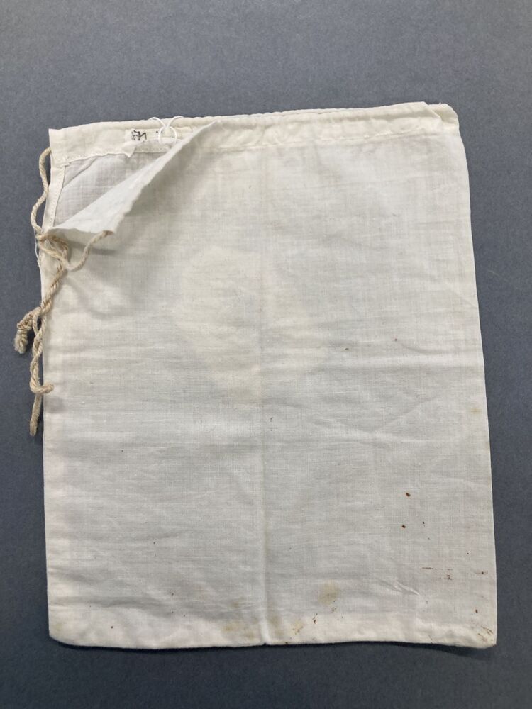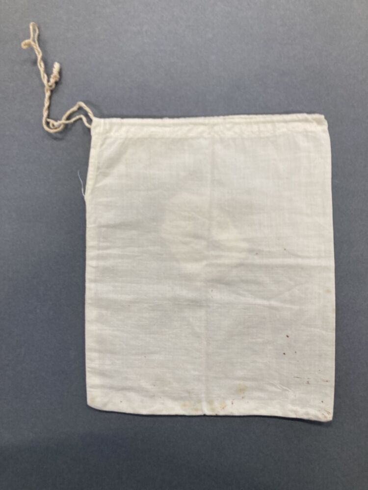 Zakje van wit katoen waarin monsters graan of peulvruchten naar de beurs werden gebracht