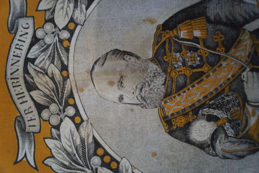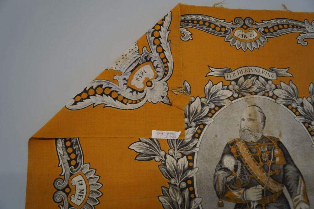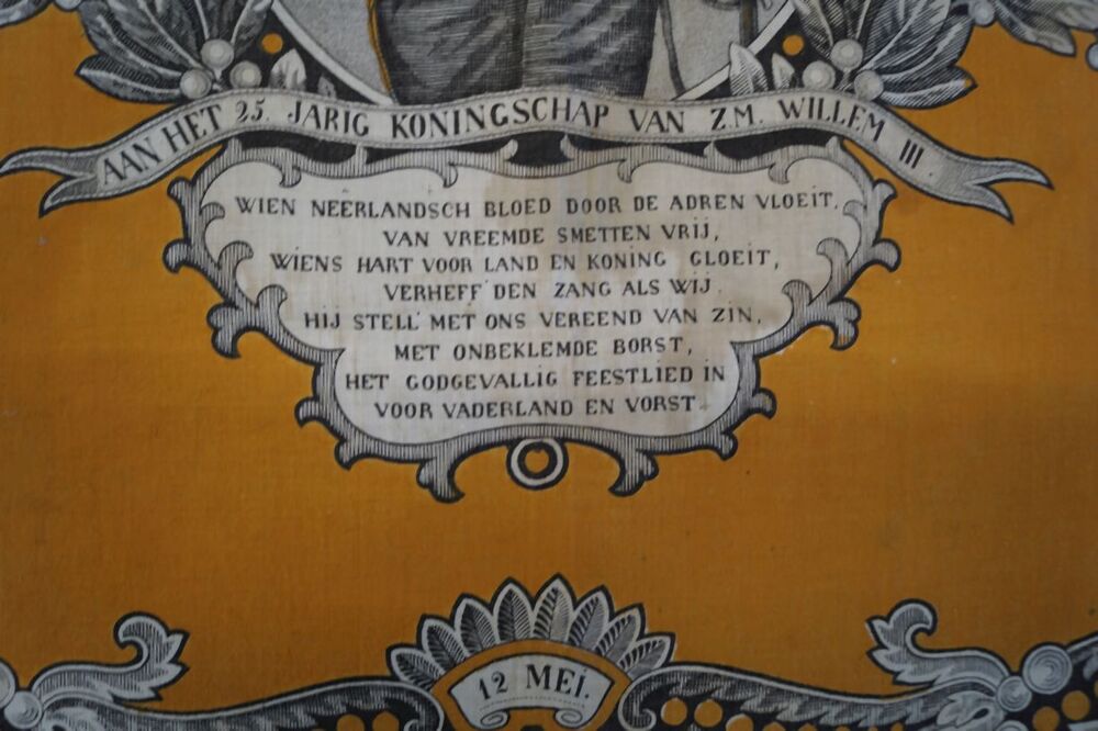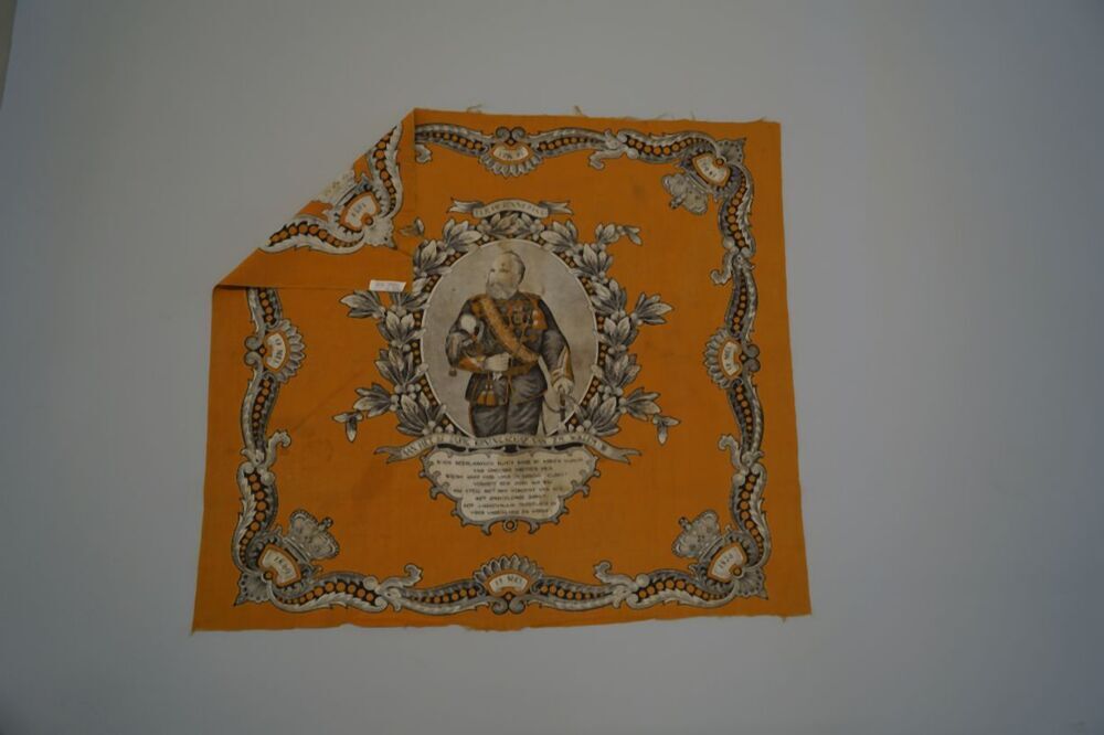 Oranje gedenkdoek ter herinnering aan het 25-jarig koningschap van Z.M. Koning Willem III