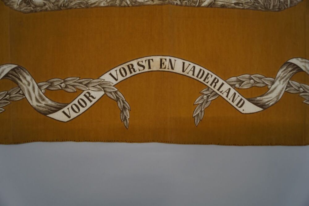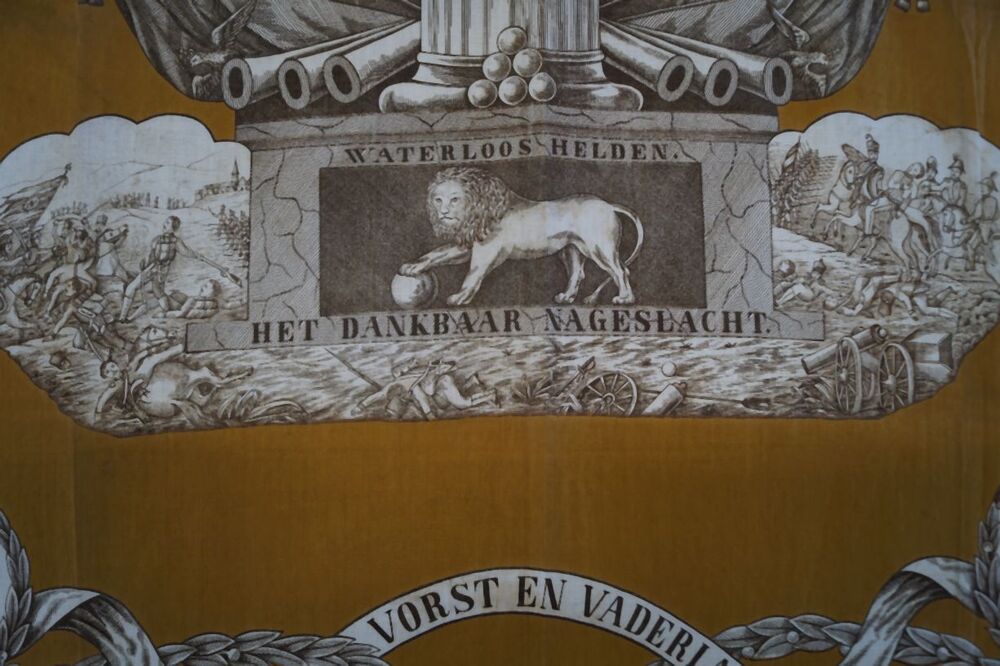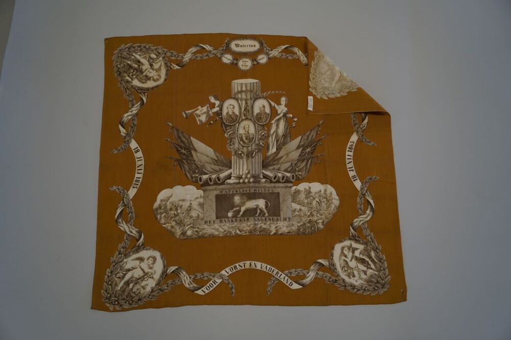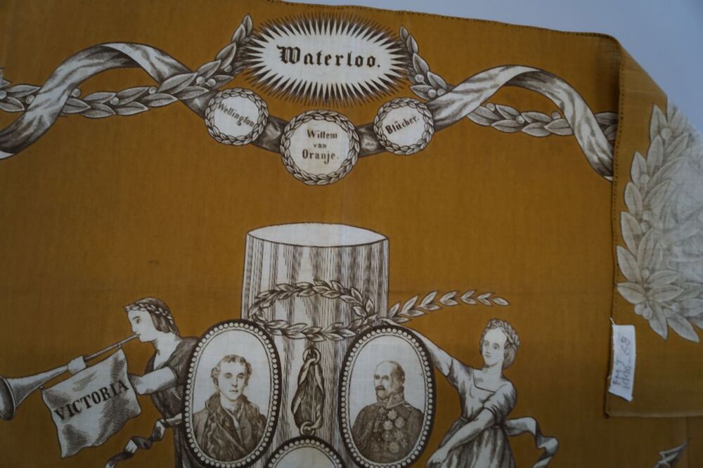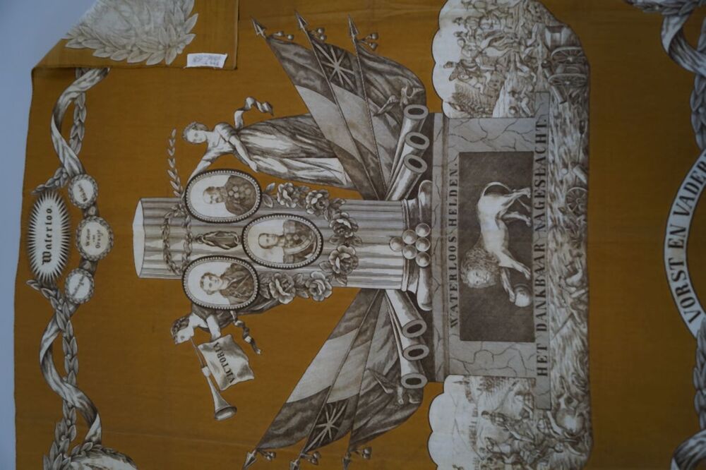 Okergele gedenkdoek ter herinnering aan de slag bij Waterloo 1815