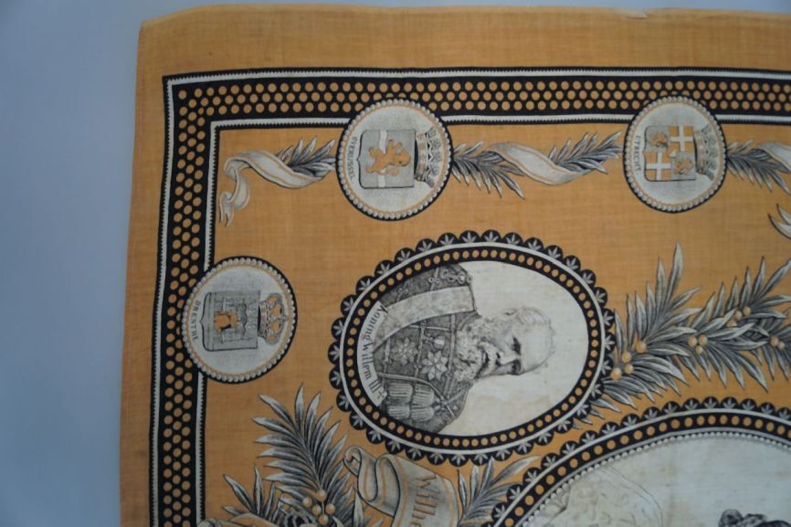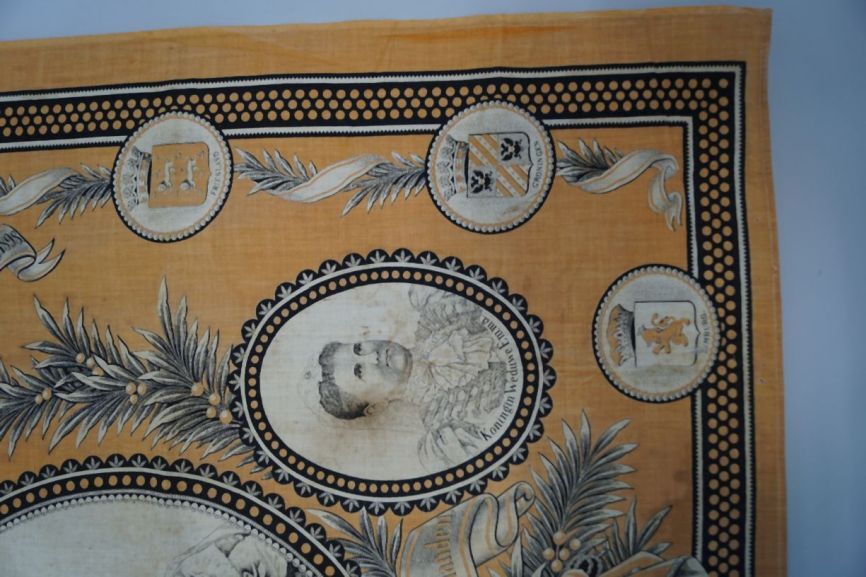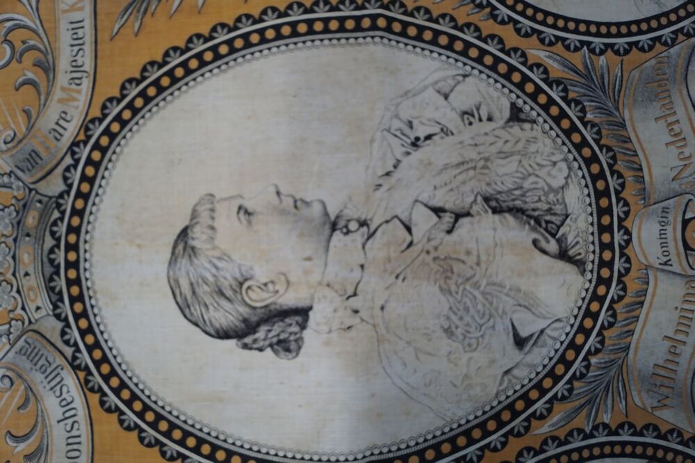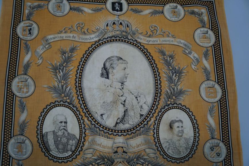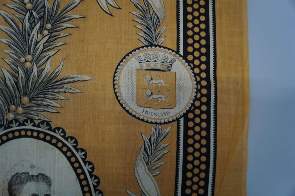 Oranje gedenkdoek ter herinnering aan de kroonsbestijging van Koningin Wilhelmina