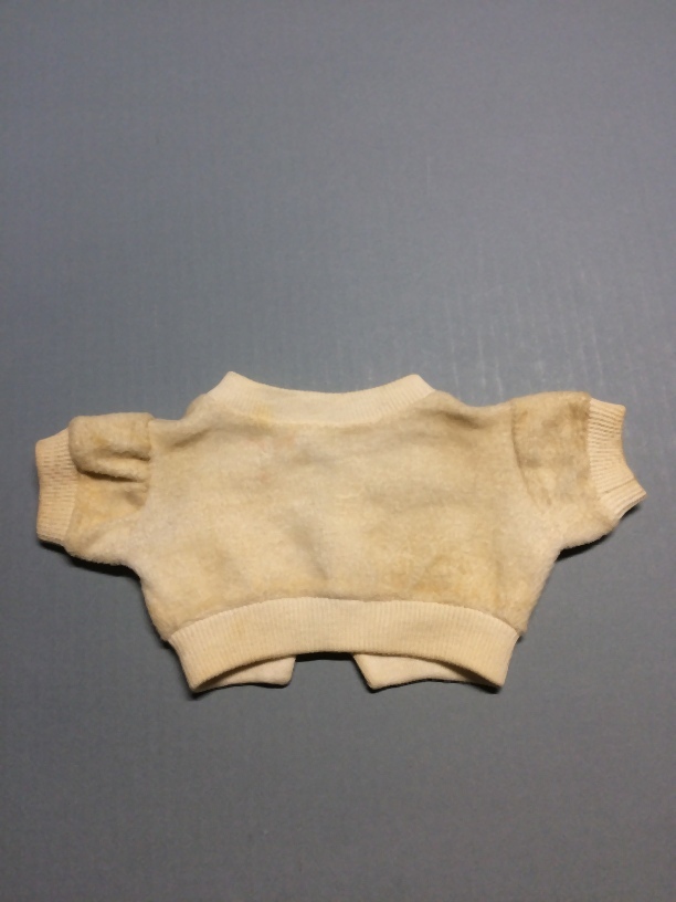 Vest voor pop, korte mouwen van tricot velours met ribbelboorden van crème wit katoen