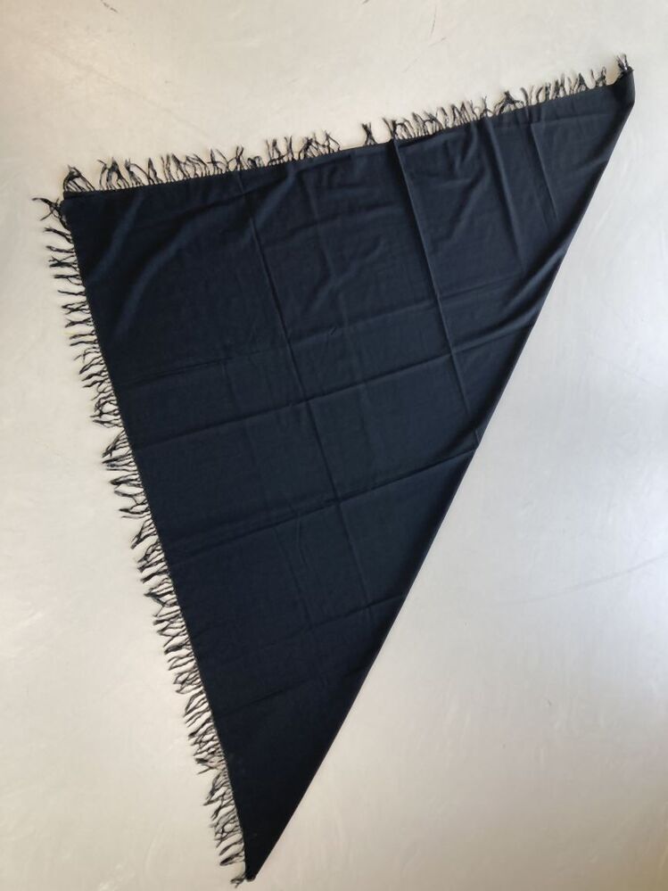 Effen zwart wollen omslagdoek van kamgaren serge, twee zijden franje