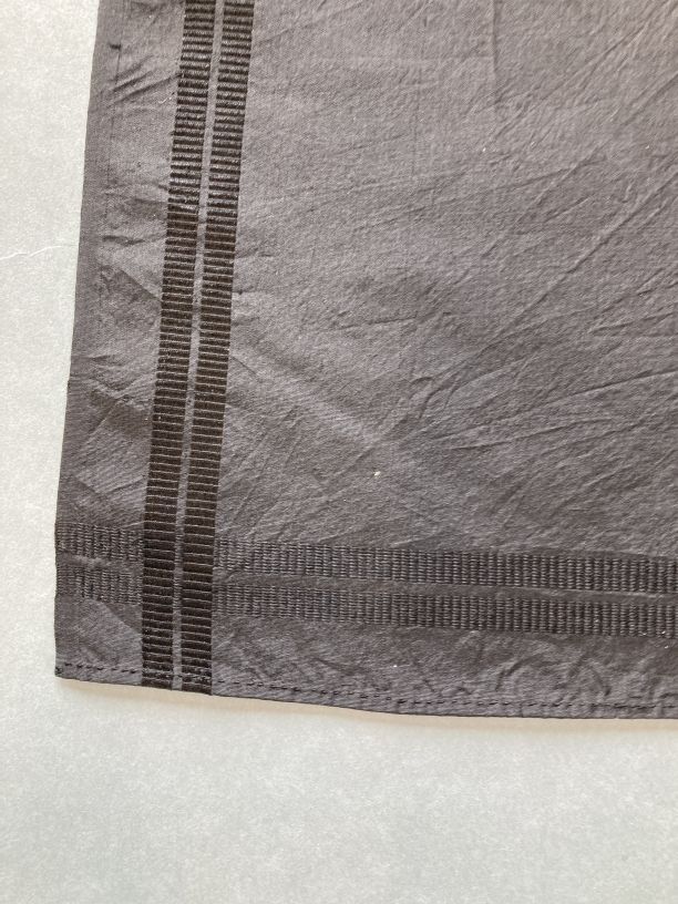 Zijden rouwsjaal, effen zwart, met twee smalle ribsranden rondom
