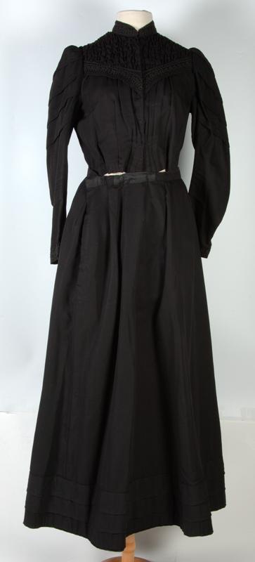 Lijf van tweedelige zwart wollen rouwjapon met lange kopmouwen