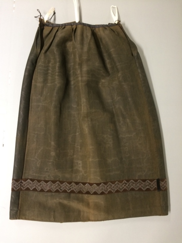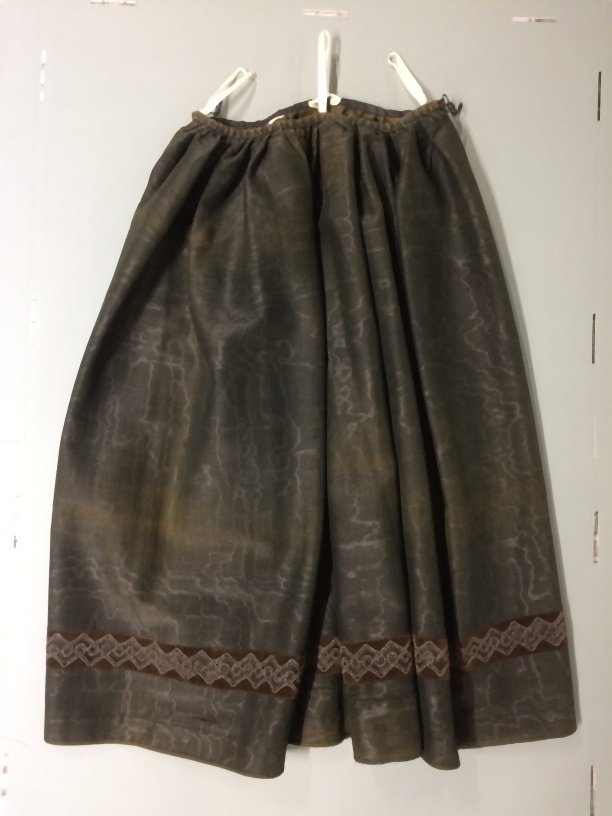 Onderrok van donkergrijs wollen moiré met bies met glittertjes, samen met twee andere onderrokken