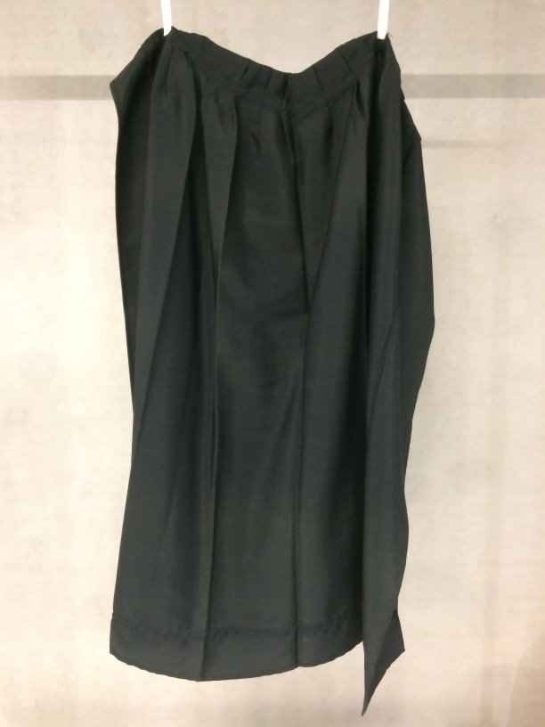 Zwart geplooid luster met biesje langs zoom, onderdeel van groep van drie schorten