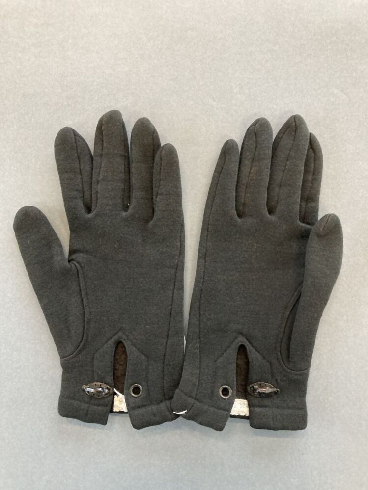 Paar dameshandschoenen, zwart tricot, van heel dun tot dik gemoltonneerd, onderdeel van groep van drie