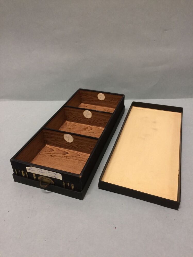 Drievaks-knopendoosje, behorende bij couponsnijmachine afkomstig van de firma Covers in Leeuwarden; met Jugendstildecoratie