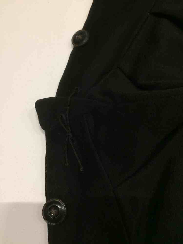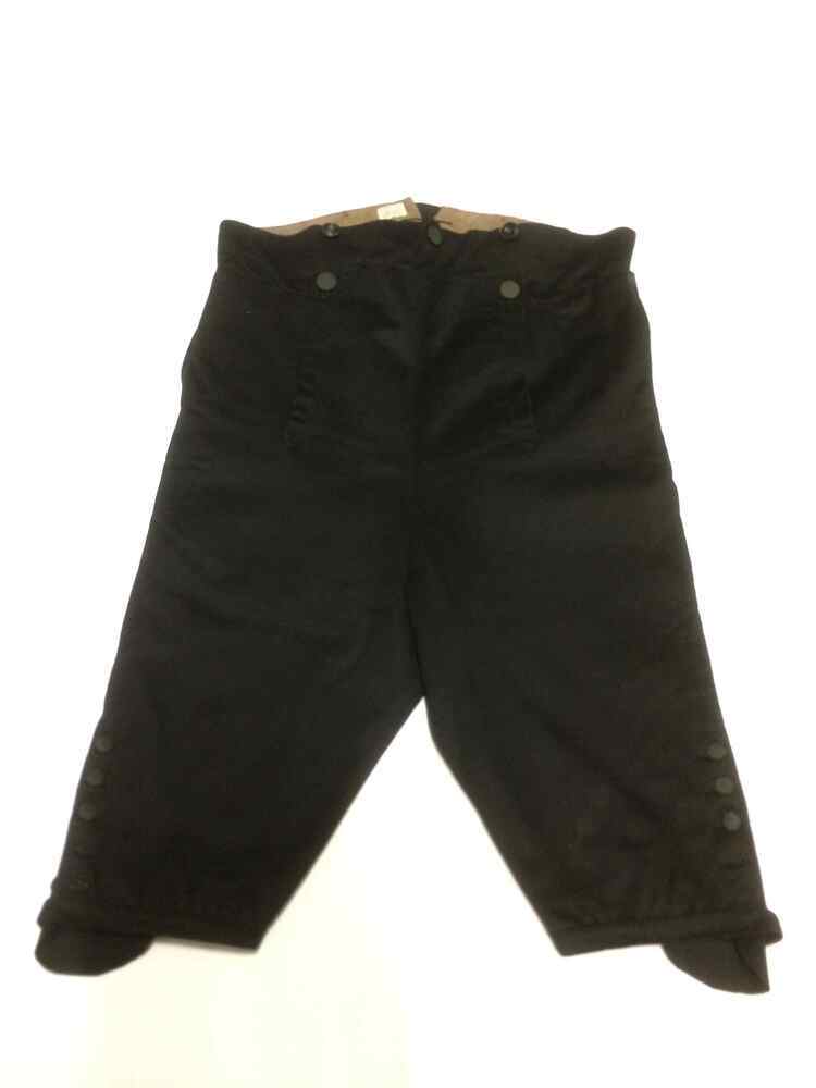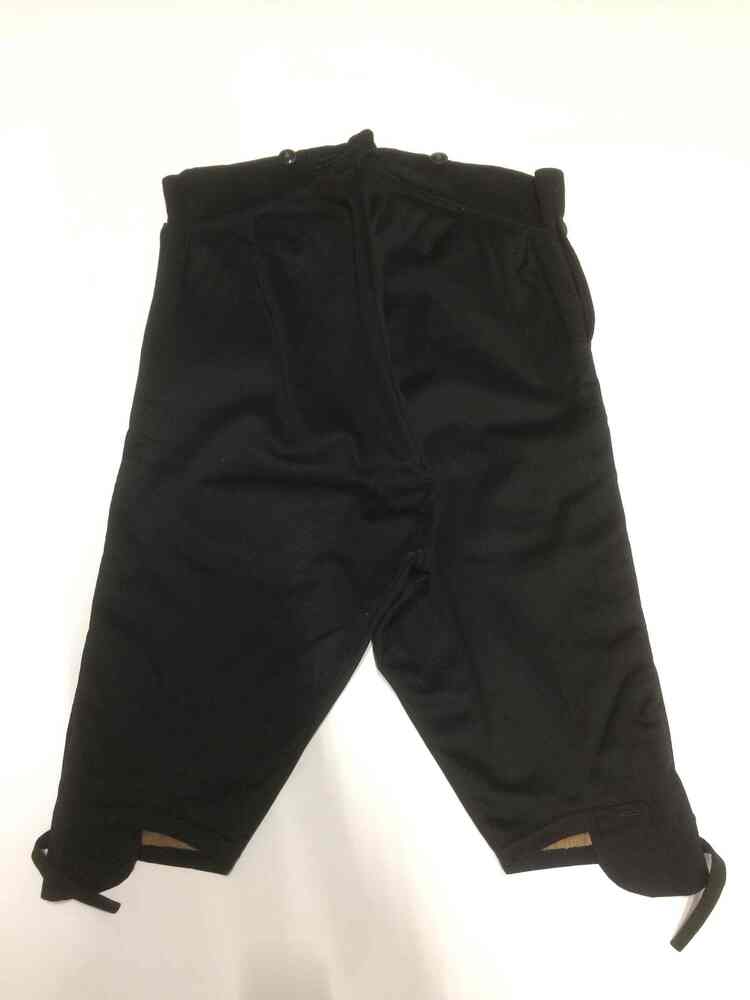 Kniebroek van zwart laken met klepsluiting, onderdeel van Fries mannenkostuum