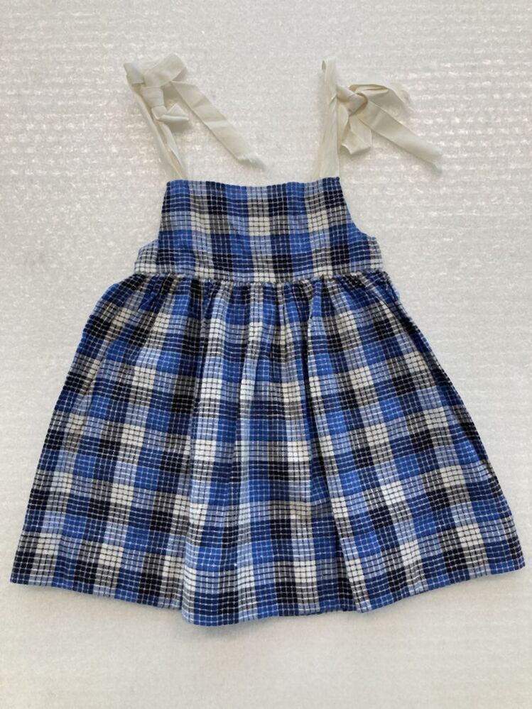 Overgooiertje van geruite katoen in de kleuren blauw, zwart en wit, met nylon strikken op de schouders