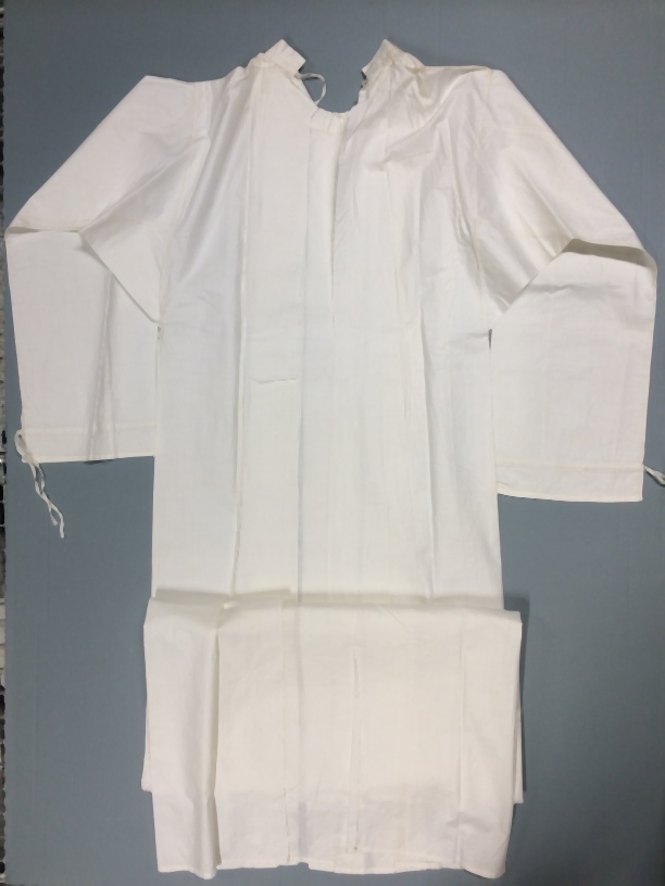Doodshemd van wit katoen met plooien in voorpand