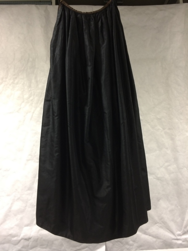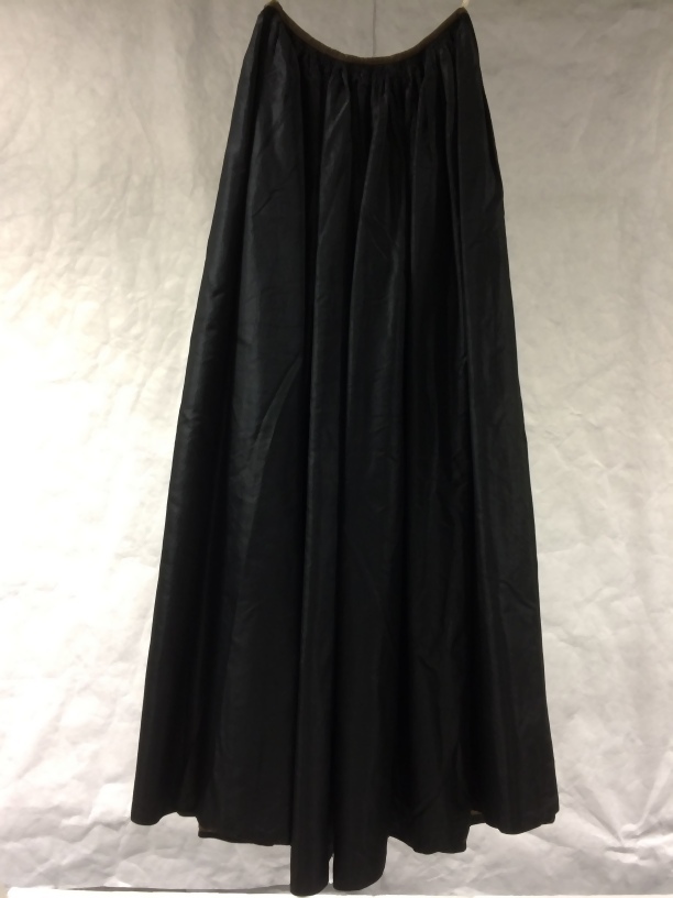Lange wijde rok van een trouwkostuum van zwarte zijde