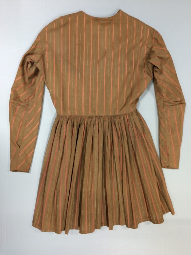 Schootjak van bronsgroen katoen met roodbruine zijden strepen