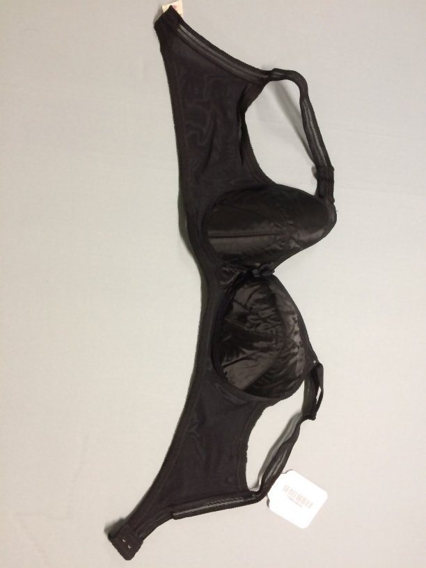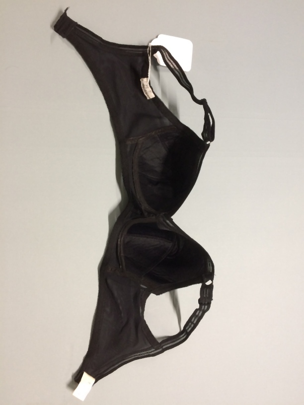 Zwarte bustehouder, maat 80B, onderdeel van beige koffer met lingerie