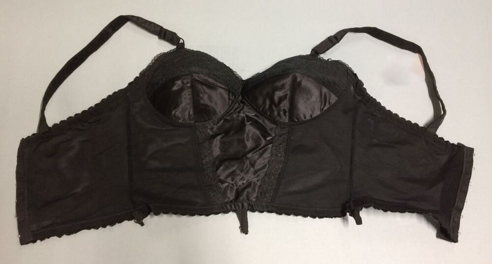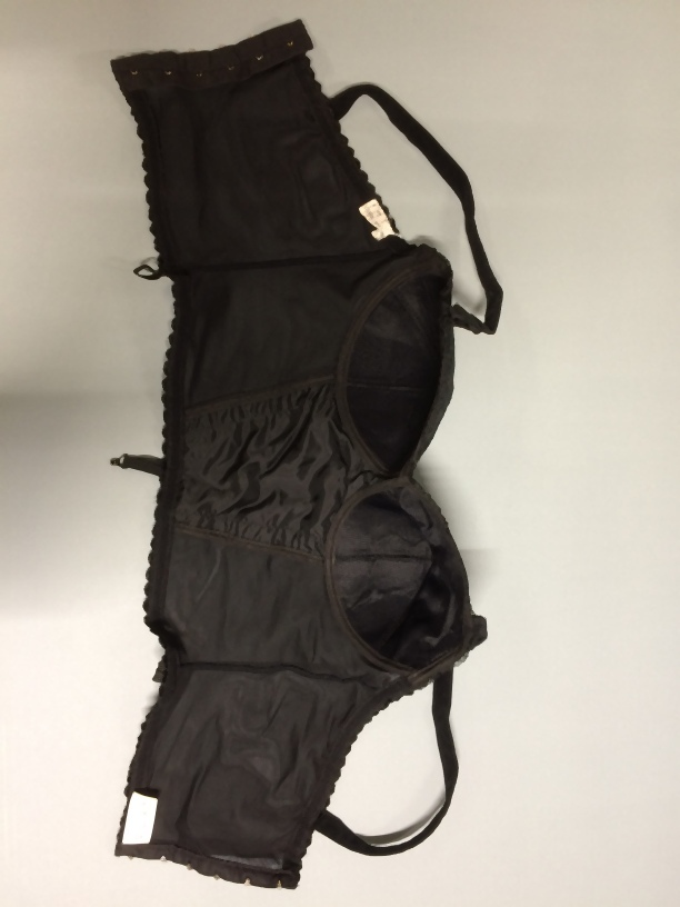 Zwarte bustehouder, maat 85B, onderdeel van beige koffer met lingerie