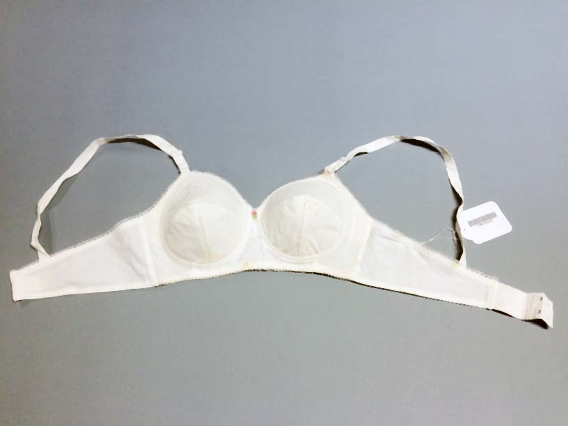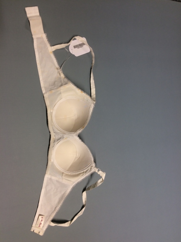 Witte bustehouder, maat 80B, onderdeel van beige koffer met lingerie