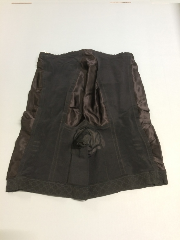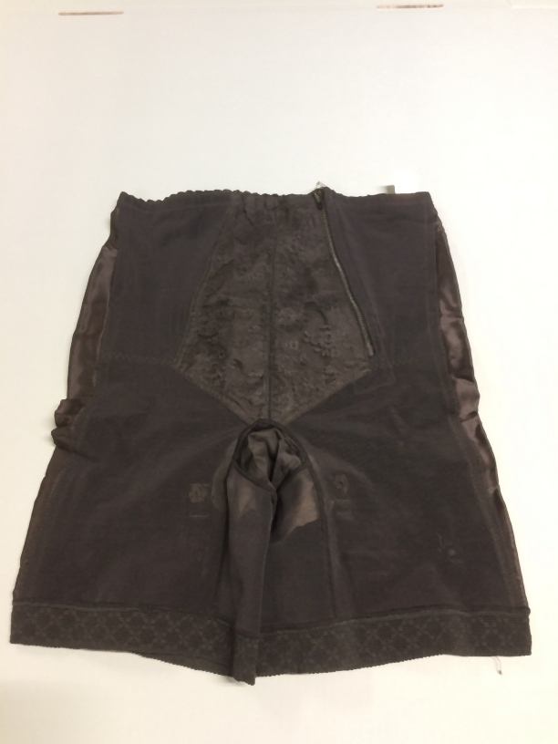 Zwarte panty, corrigerend broekje met lange pijpjes, maat 68, onderdeel van beige koffer met lingerie