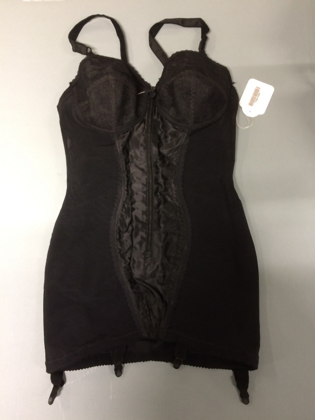 Zwart korselett, maat 85B, onderdeel van beige koffer met lingerie