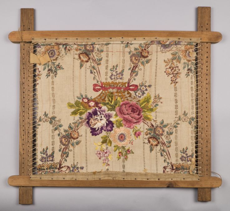 Eenvoudig borduurraam met zijde borduurwerk op bedrukt sits-achtig katoen