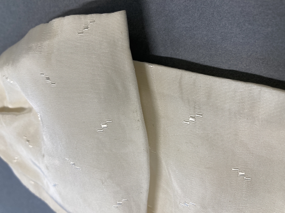 Witte das van kunstzijde met ingeweven klein motiefje, bestaat uit drie flappen, onderdeel van nieuw-Fries mannenkostuum