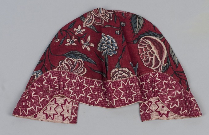 Huismuts van sits met rode grond, bol met pas, afgezet met langetband met sterren