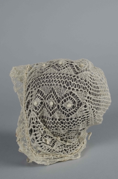 Ajourgebreid mutsje, binnengekomen met neteldoek mutsje