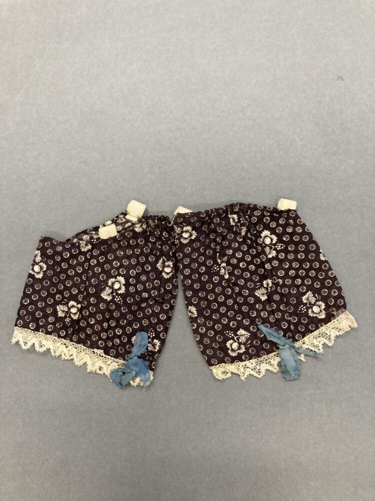 Paar losse pofmouwtjes met klein motiefje op dieppaarse grond, onderdeel van groep van twee paar
