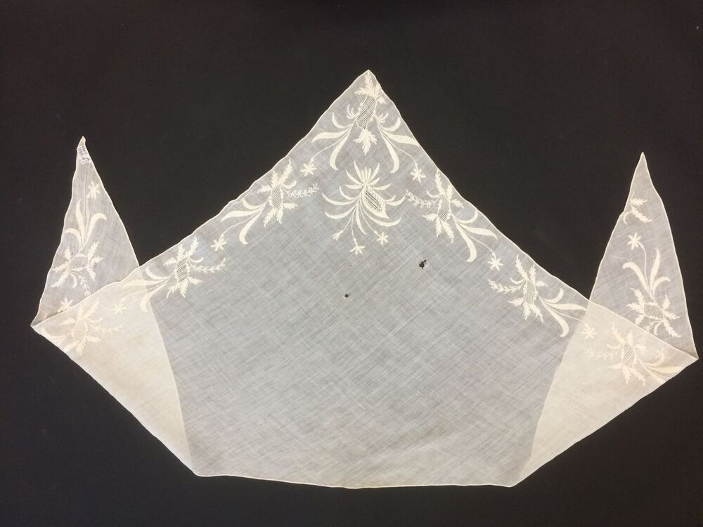 1) hals- of hoofddoek die met een tip (uiteinde) op de rug wordt vastgespeld. https://data.cultureelerfgoed.nl/term/id/cht/00c8692f-af9f-490f-b4ec-ec045b417f30
