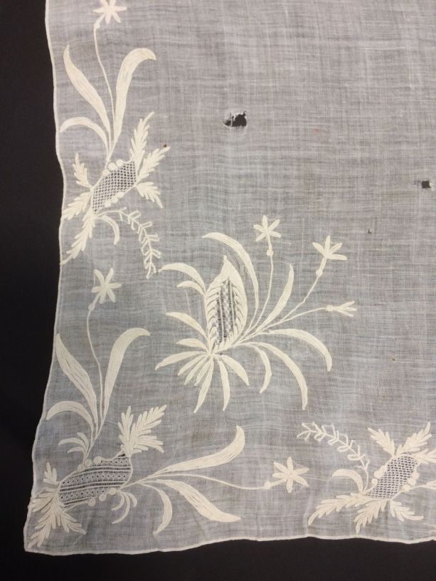 Tipdoek met langs de rand en in de punt losse rococo-bloemmotieven
