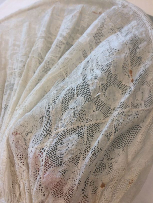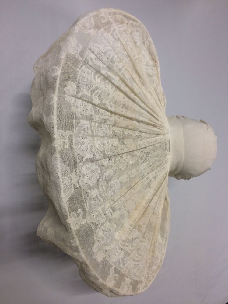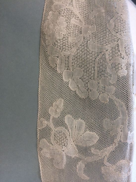 Grote Duitse muts, luifel van Valencienneskant met contourdraad