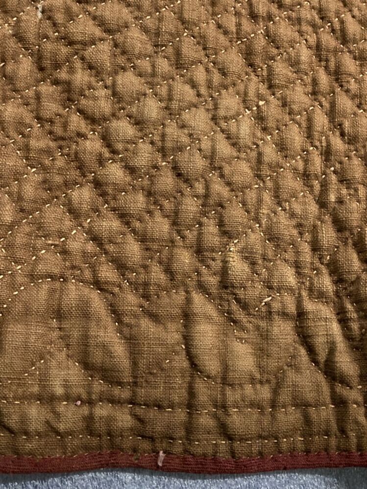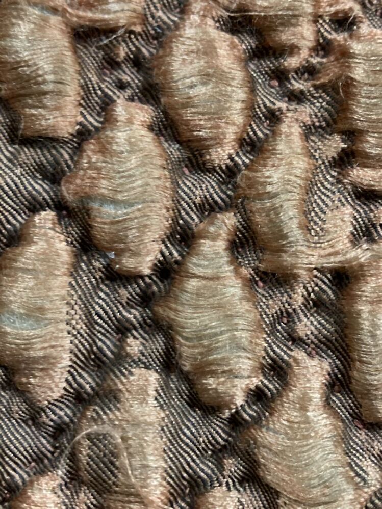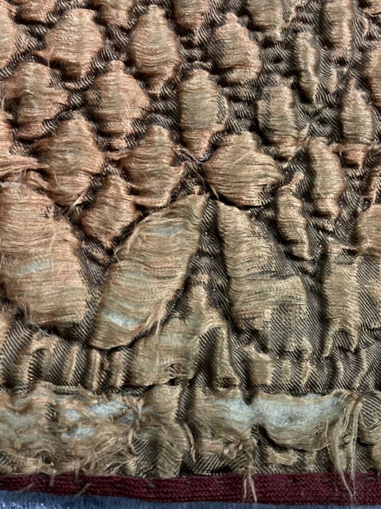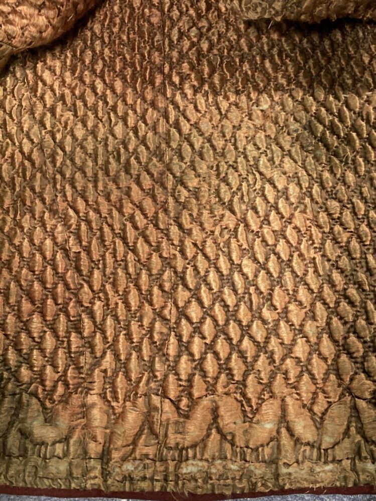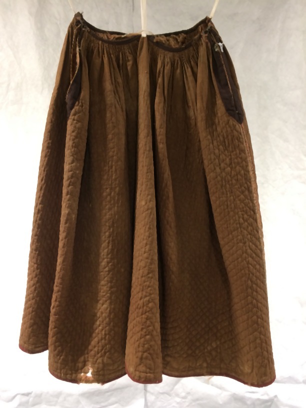 Gewatteerde zijden onderrok, door veel dragen van boven tot onder gesleten