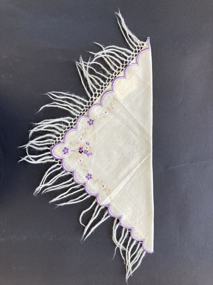Halsdoekje van crèmekleurige wol met zijden borduurwerk,